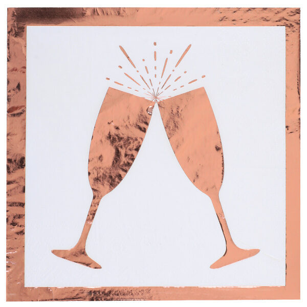Χαρτοπετσέτα 3φυλλη μεγέθους 33 x 33 σε ροζ χρυσό με ποτήρια σαμπάνιας.