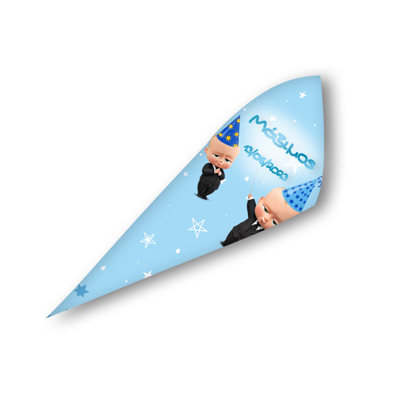 Στολίστε το candy bar ή το τραπέζι, με προσωποποιημένα χωνάκια ζαχαρωτών με θέμα τον Baby Boss για να κεραστούν οι καλεσμένοι σας!