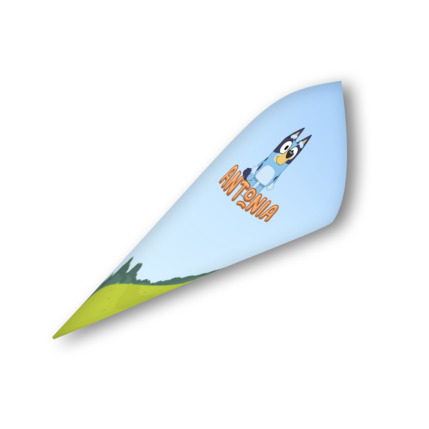 Στολίστε το candy bar ή το τραπέζι, με προσωποποιημένα χωνάκια ζαχαρωτών με θέμα τον Bluey για να κεραστούν οι καλεσμένοι σας!
