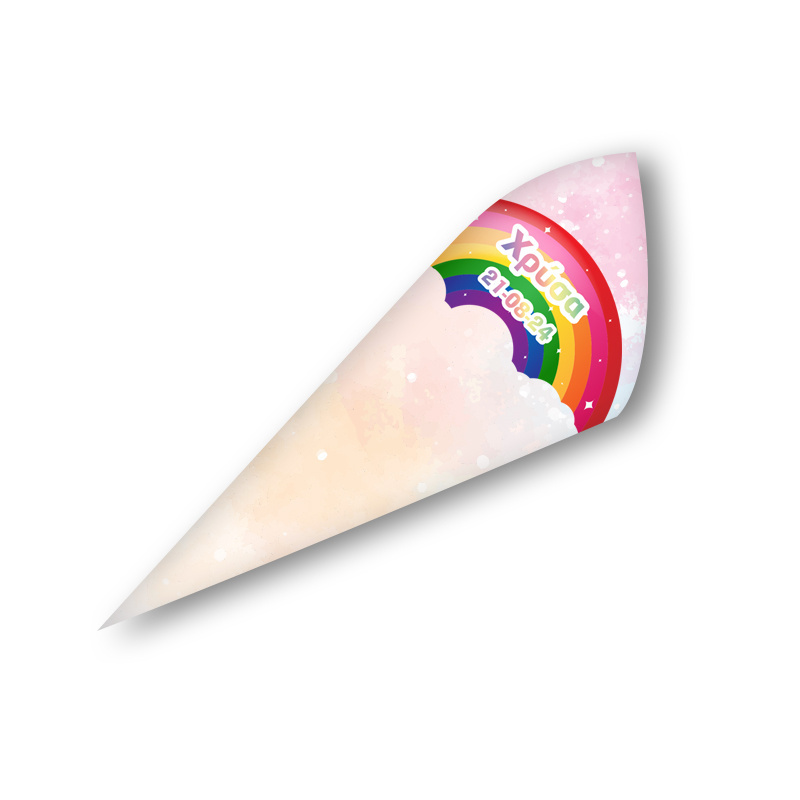 Στολίστε το candy bar ή το τραπέζι, με προσωποποιημένα χωνάκια ζαχαρωτών με θέμα τον Rainbow για να κεραστούν οι καλεσμένοι σας!