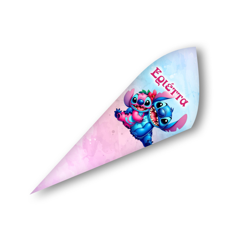 Στολίστε το candy bar ή το τραπέζι, με προσωποποιημένα χωνάκια ζαχαρωτών με θέμα Stitch & Angel για να κεραστούν οι καλεσμένοι σας!