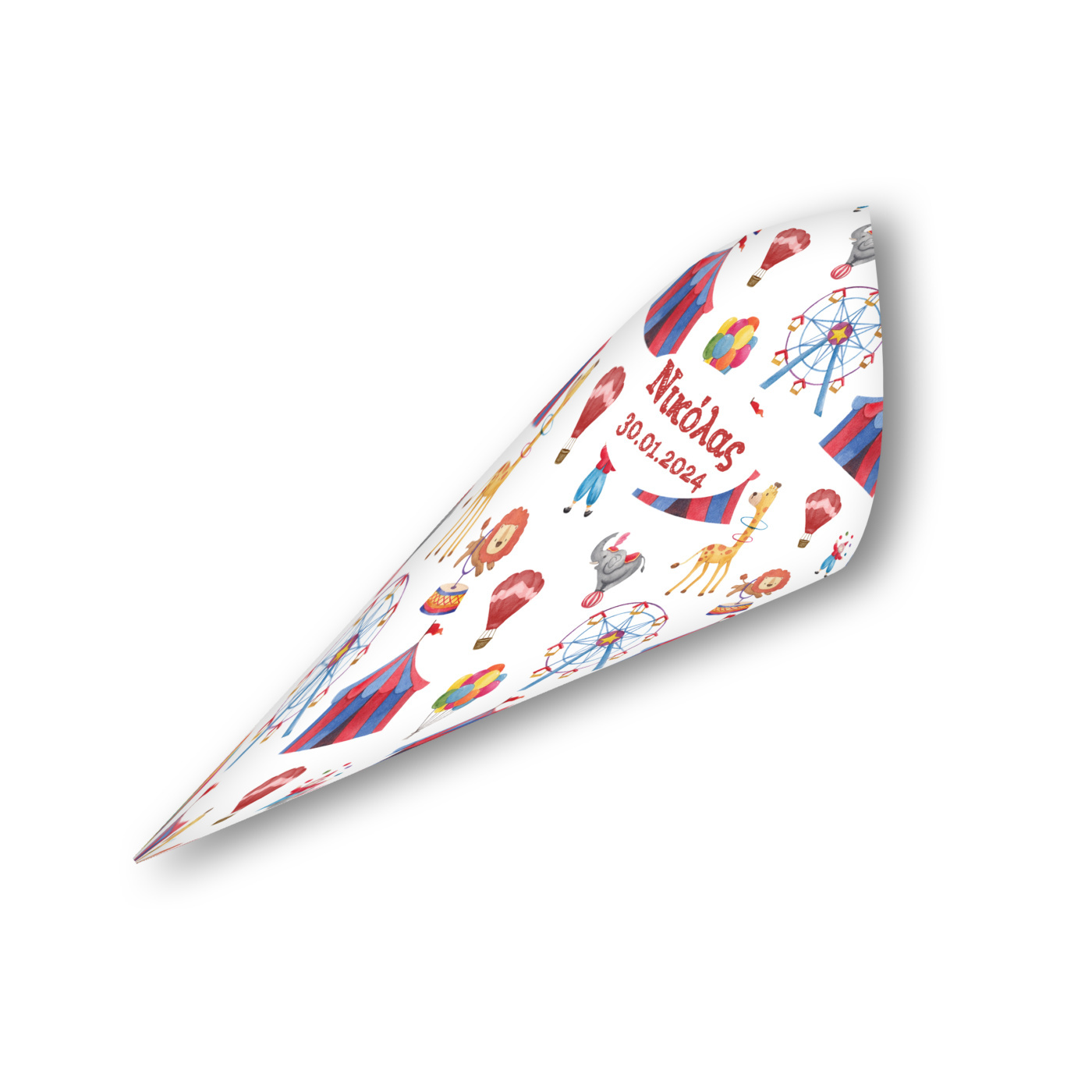 Στολίστε το candy bar ή το τραπέζι, με προσωποποιημένα χωνάκια ζαχαρωτών με θέμα Τσίρκο για να κεραστούν οι καλεσμένοι σας!