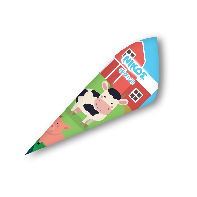 Στολίστε το candy bar ή το τραπέζι, με προσωποποιημένα χωνάκια ζαχαρωτών με θέμα τον Ζωάκια Φάρμας για να κεραστούν οι καλεσμένοι σας!