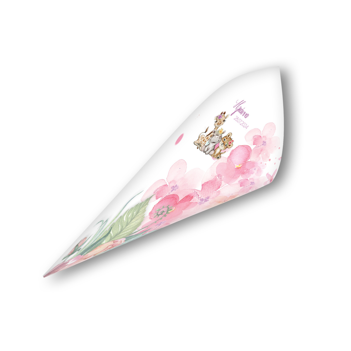 Στολίστε το candy bar ή το τραπέζι, με προσωποποιημένα χωνάκια ζαχαρωτών με θέμα Ζωάκια ζούγκλας Κορίτσι για να κεραστούν οι καλεσμένοι σας!