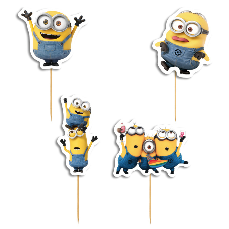 Μεγάλα τόπερ Minions 10cm για την διακόσμηση των cupcakes και του μπουφέ.