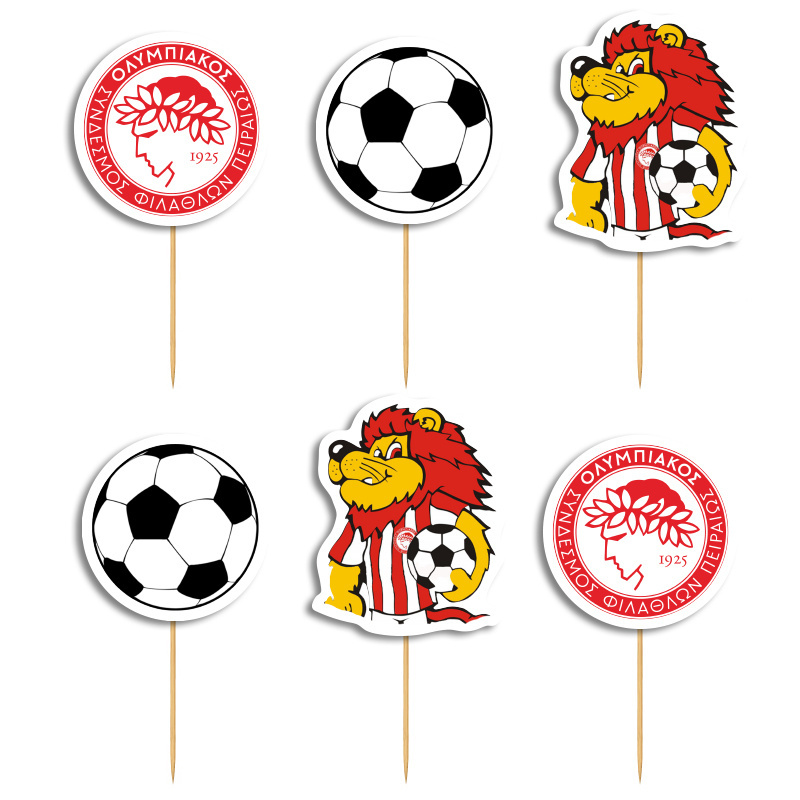 Μεγάλα τόπερ Ολυμπιακός 10cm για την διακόσμηση των cupcakes και του μπουφέ.
