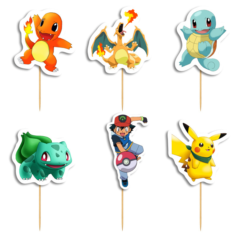 Μεγάλα τόπερ Pokemon 10cm για την διακόσμηση των cupcakes και του μπουφέ.