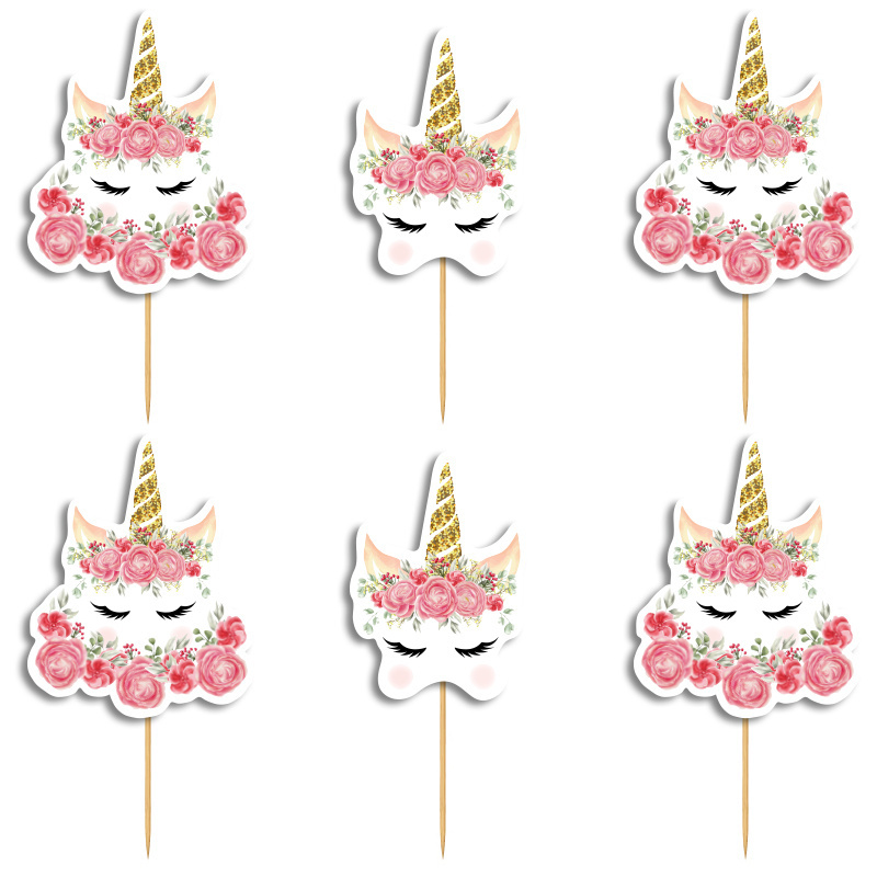 Μεγάλα τόπερ Unicorn 10cm για την διακόσμηση των cupcakes και του μπουφέ.