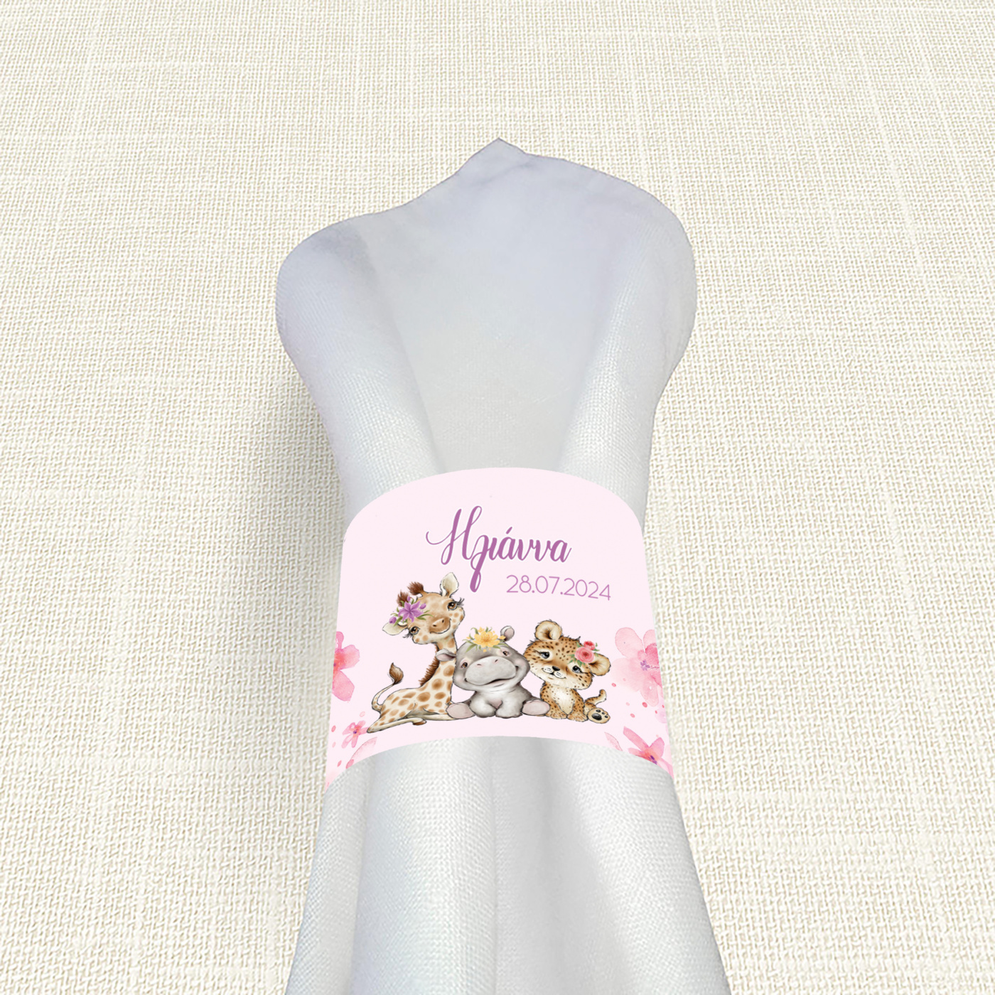 Δαχτυλίδι πετσέτας χάρτινο με όνομα Ζωάκια Ζούγκλας Κορίτσι