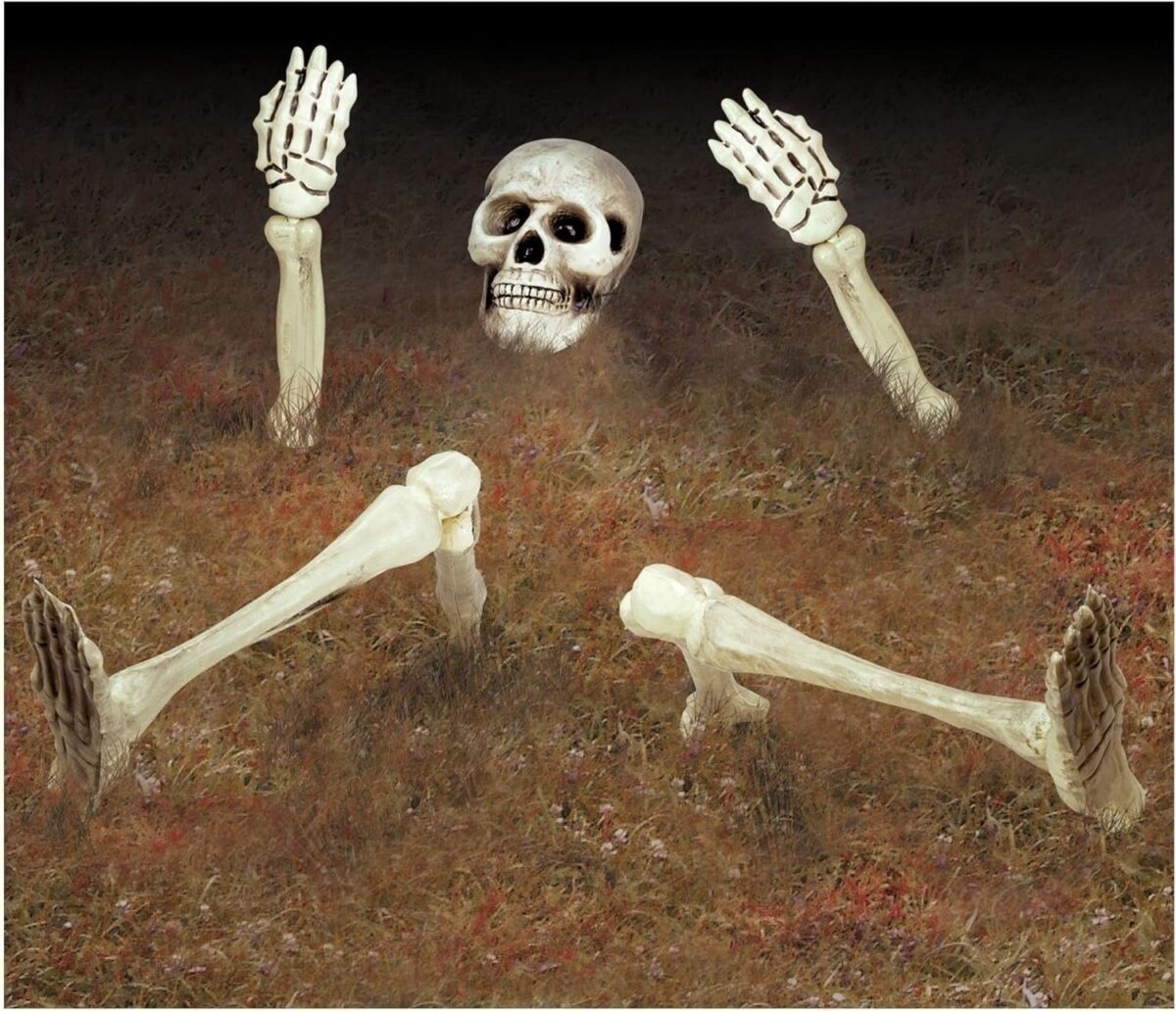 SPOOKY DESIGN: Features molded plastic outdoor display of human “remains” that are planted in the ground to create the illusion of a skeleton rising from the grave.