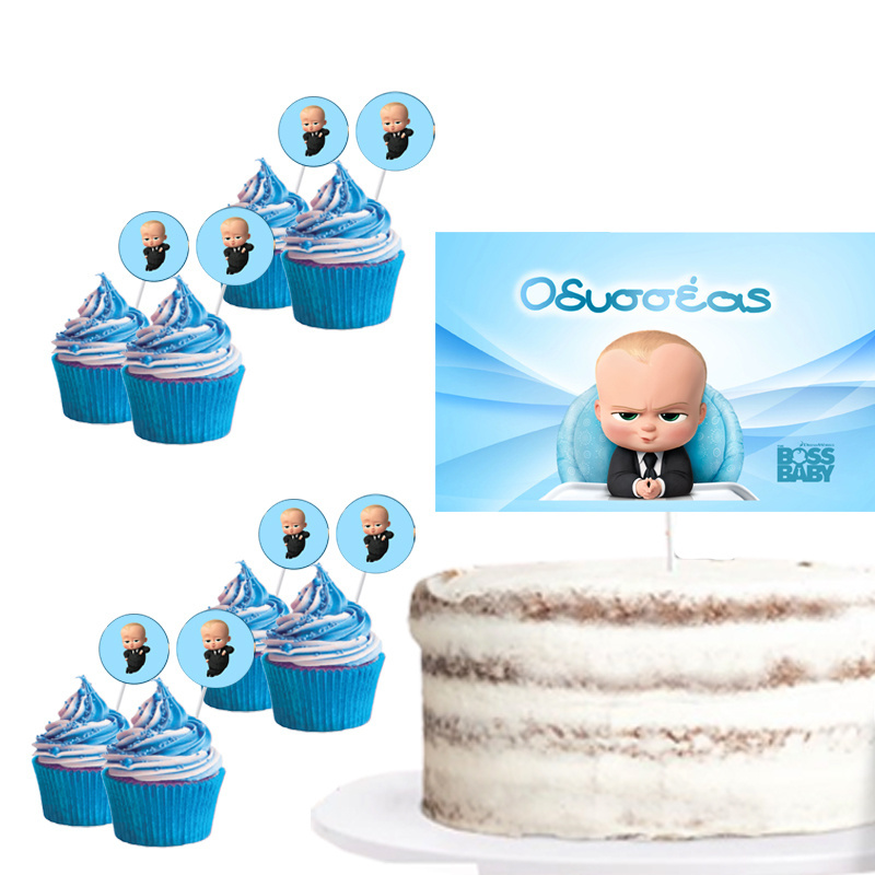 Εντυπωσιακή διακόσμηση για την τούρτα και τα φαγητά σας με θέμα Baby Boss. Ο επόμενος αρχηγός από κούνια θα είναι ο ήρωάς σας!