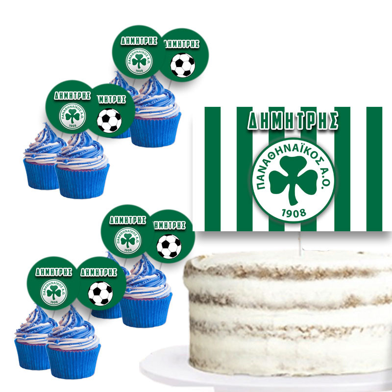 Διακόσμηση τούρτας Παναθηναϊκός & 8 topper cupcakes με το όνομα σου.
