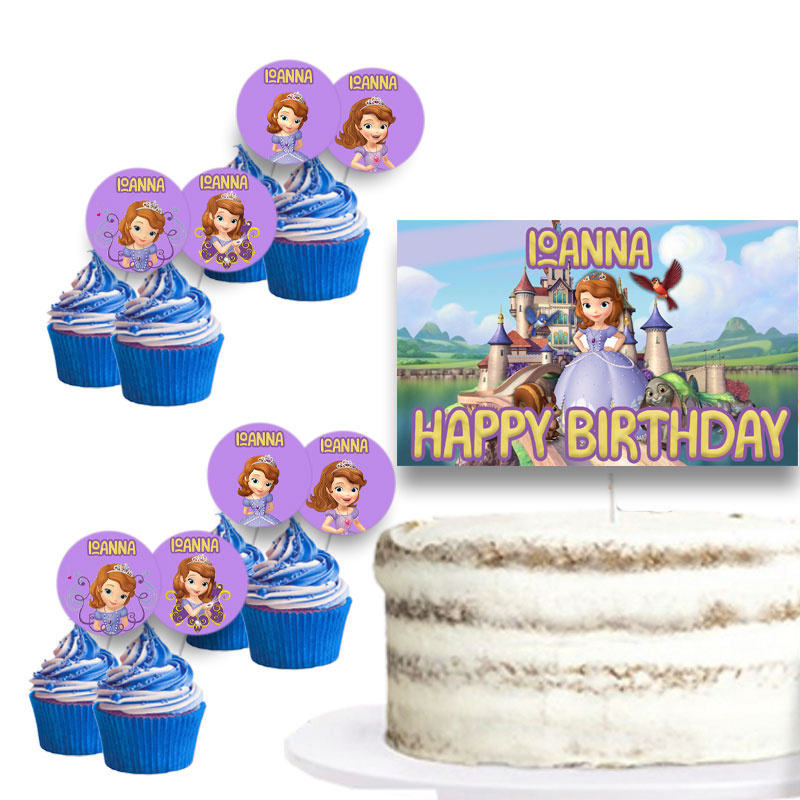 Διακόσμηση τούρτας με θέμα την Πριγκίπισσα Σοφία & 8 topper cupcakes με το όνομα σου.