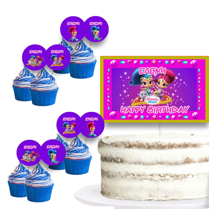 Διακόσμηση τούρτας με θέμα Shimmer & Shine & 8 topper cupcakes με το όνομα σου.