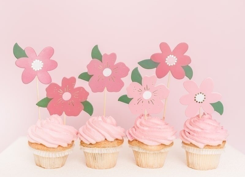 Cake toppers Flowers, mix of colours set contains 8 toppiers on sticks, height approx. 13-14.5 cm. (1 pkt / 8 pc.)