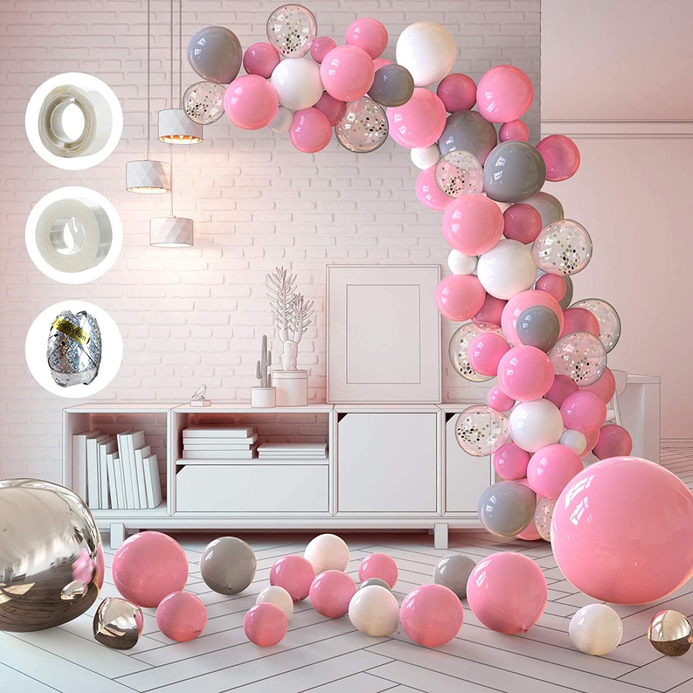DIY Γιρλάντα “Pink & Silver” / 118 Μπαλόνια. Δημιούργησε υπέροχες στιγμές για πάρτι γενεθλίων, baby shower, γάμο, ημέρα του Αγίου Βαλεντίνου.
