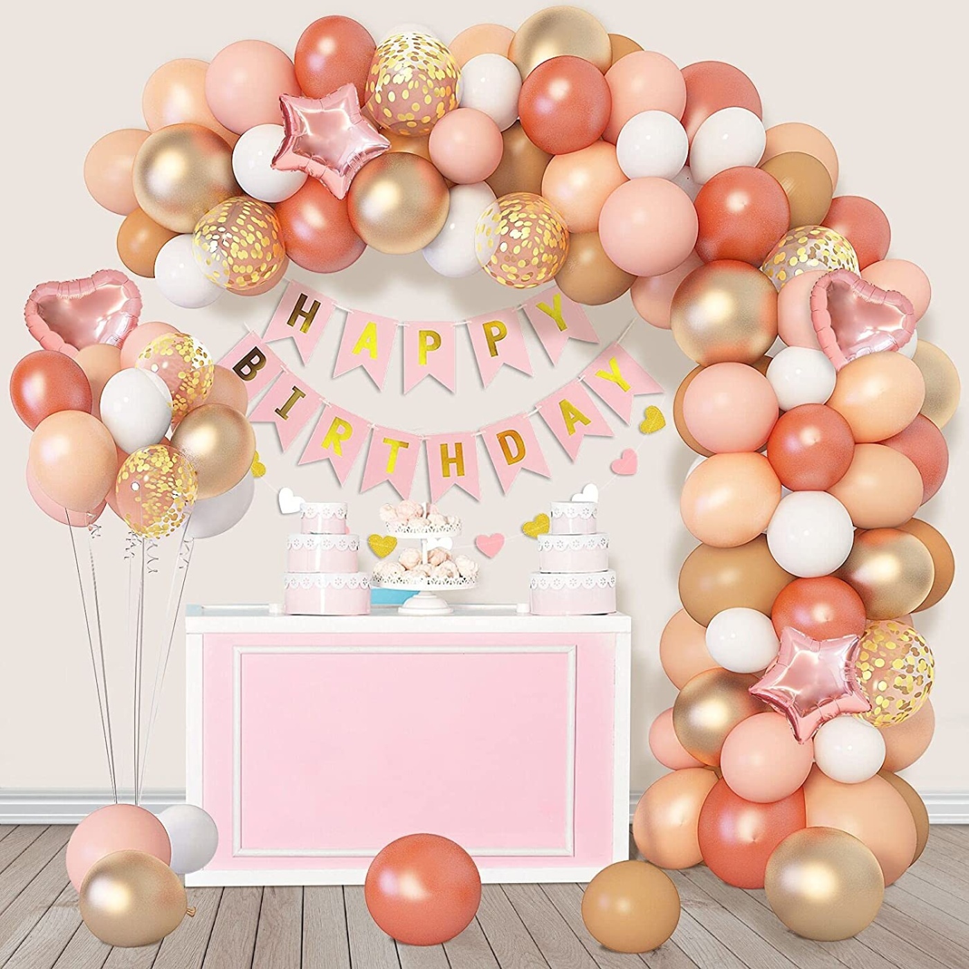 DIY Γιρλάντα Rosegold XL / 129 Μπαλόνια. Σετ DIY Γιρλάντα με μπαλόνια σε χρώματα ροζ και χρυσό, μπαλόνια foil σε σχήματα, μπαλόνια με confetti και κρεμαστές γιρλάντες. Το αποτέλεσμα θα είναι εκπληκτικό!