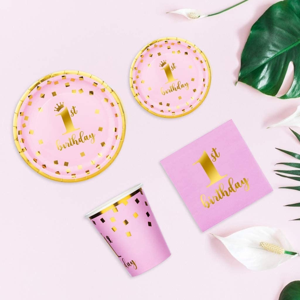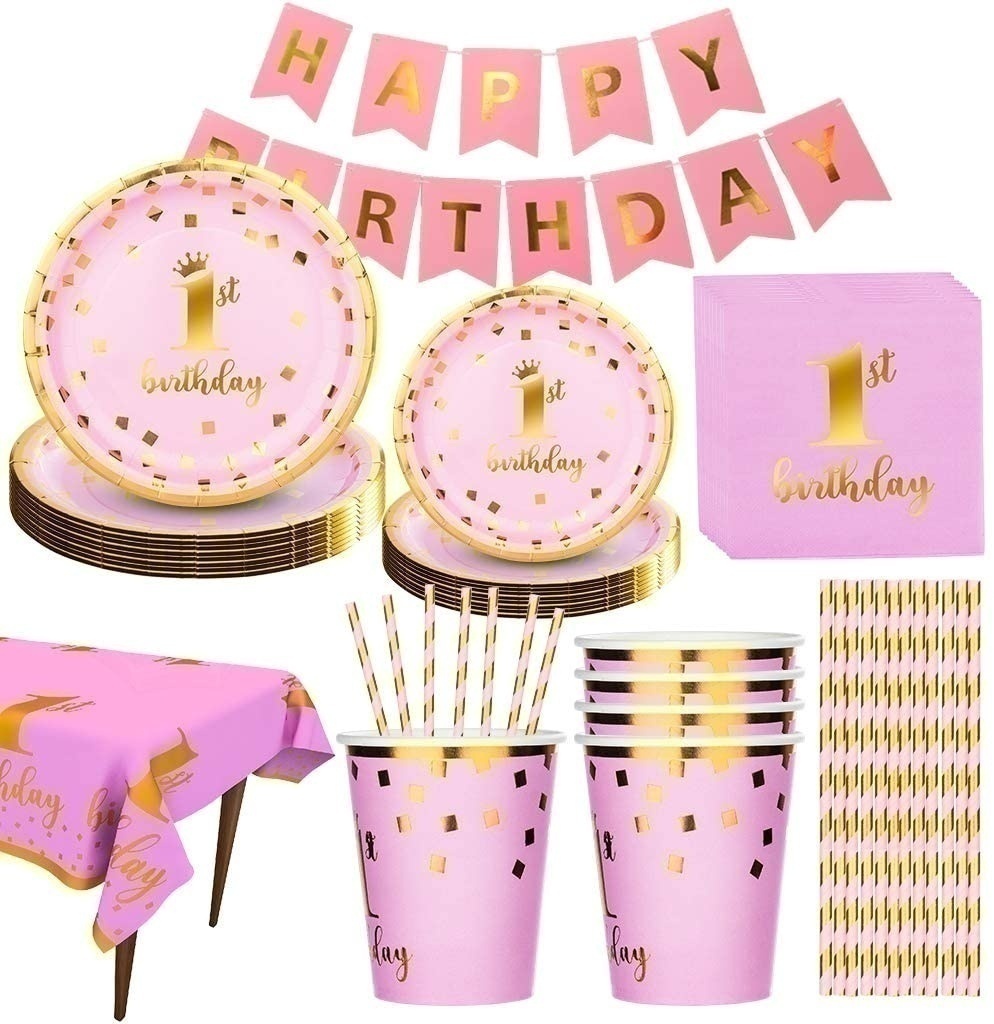 Είδη Πάρτυ για Κορίτσι “1st Birthday”. Ιδανικό σετ Πάρτυ για να διακοσμήσετε το τραπέζι σας αυτή την ιδιαίτερη ημέρα.