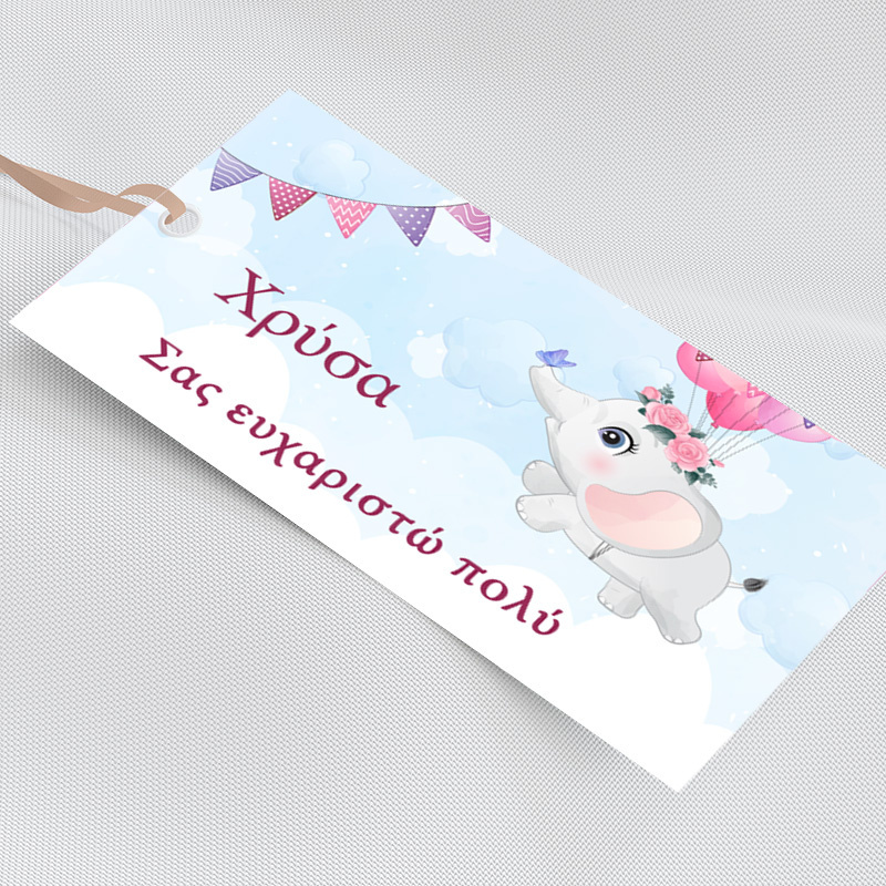 Χάρτινη κρεμαστή ετικέτα με όνομα Ελεφαντάκι για Κορίτσι