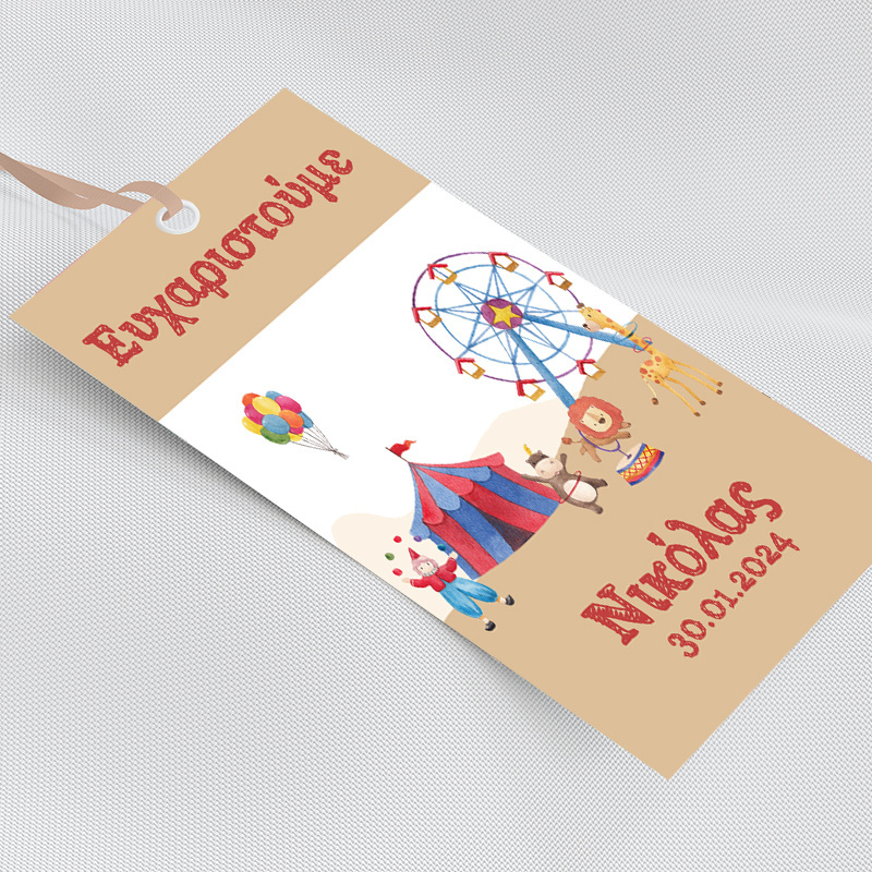 Χάρτινη κρεμαστή ετικέτα με όνομα Τσίρκο