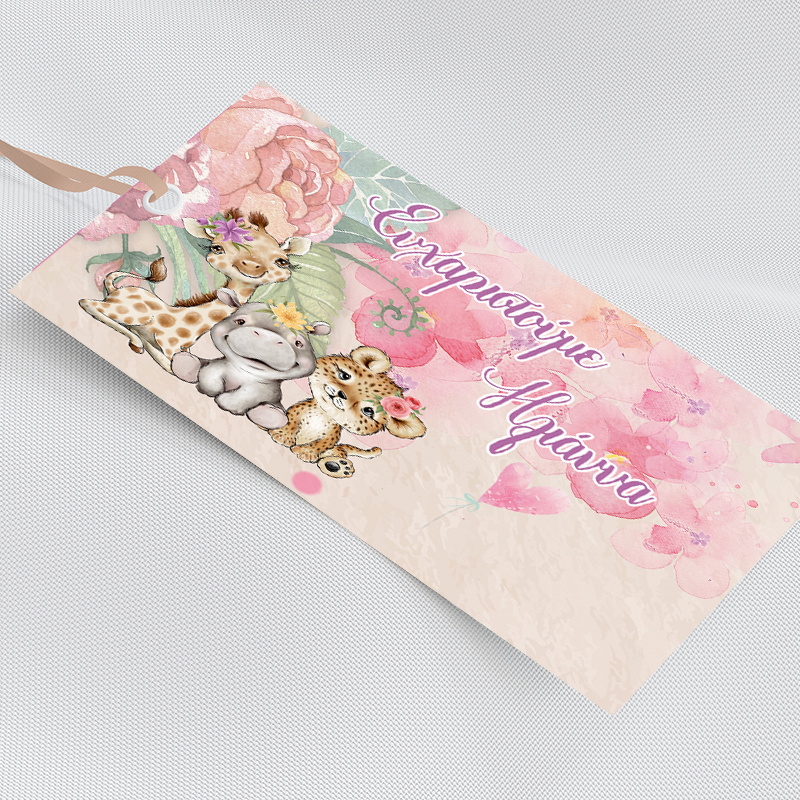 Χάρτινη κρεμαστή ετικέτα με όνομα Ζωάκια ζούγκλας Κορίτσι