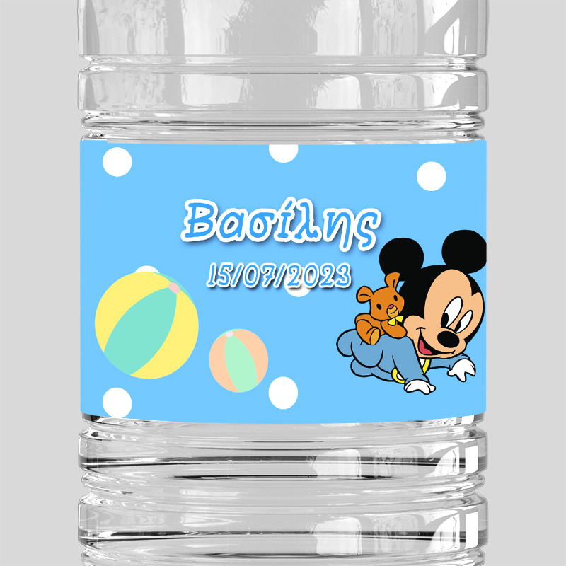 Προσωποποιημένες ετικέτες για μπουκαλάκια νερού με θέμα τον Baby Mickey.