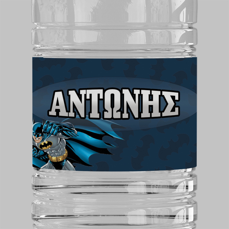 Προσωποποιημένες ετικέτες για μπουκαλάκια νερού με θέμα τον Batman.