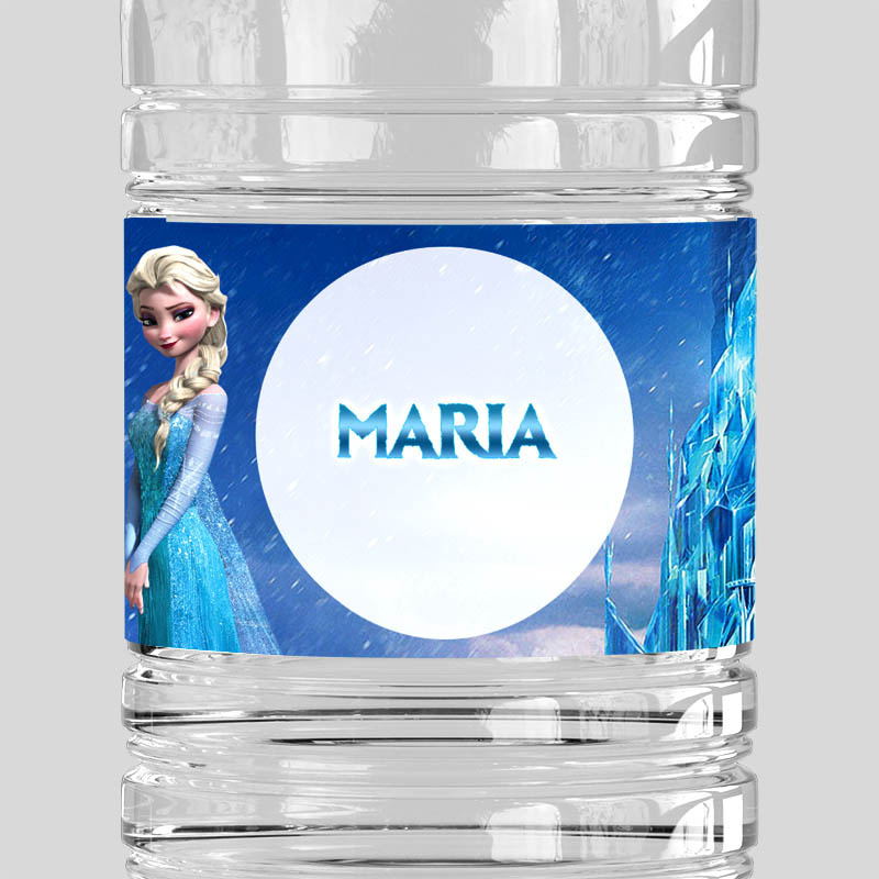 Προσωποποιημένες ετικέτες για μπουκαλάκια νερού με θέμα το Frozen.