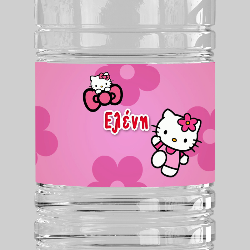 Προσωποποιημένες ετικέτες για μπουκαλάκια νερού με θέμα την Hello Kitty.