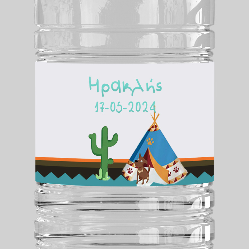 Προσωποποιημένες ετικέτες για μπουκαλάκια νερού με θέμα Ινδιάνος.