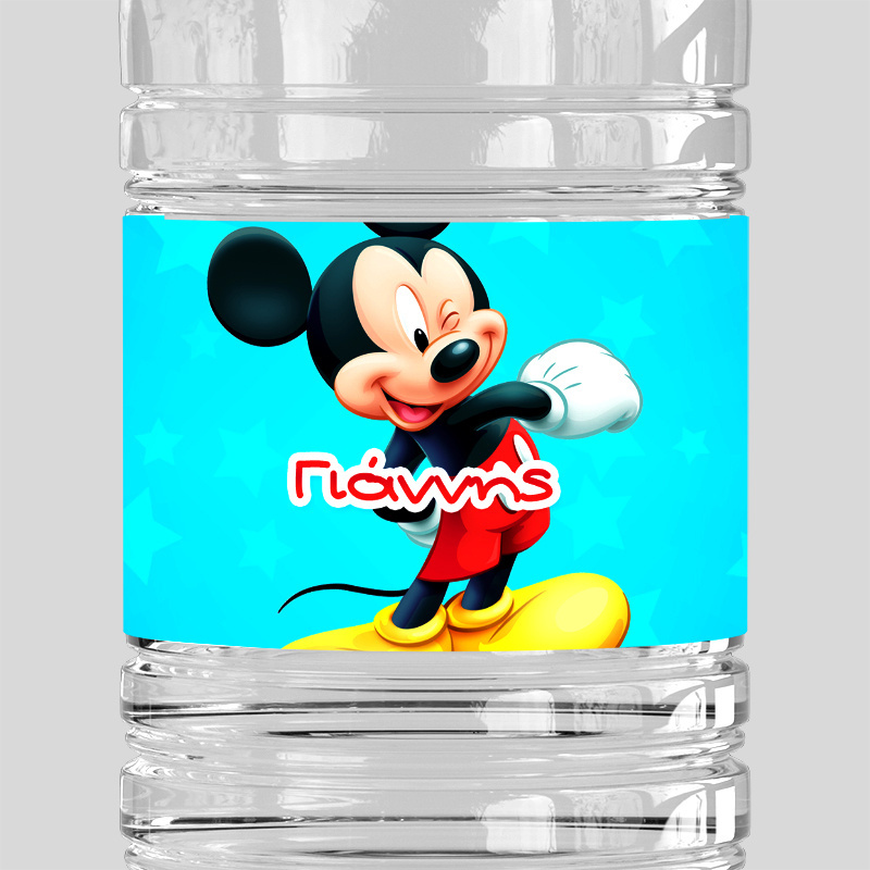 Προσωποποιημένες ετικέτες για μπουκαλάκια νερού με θέμα τον Mickey.