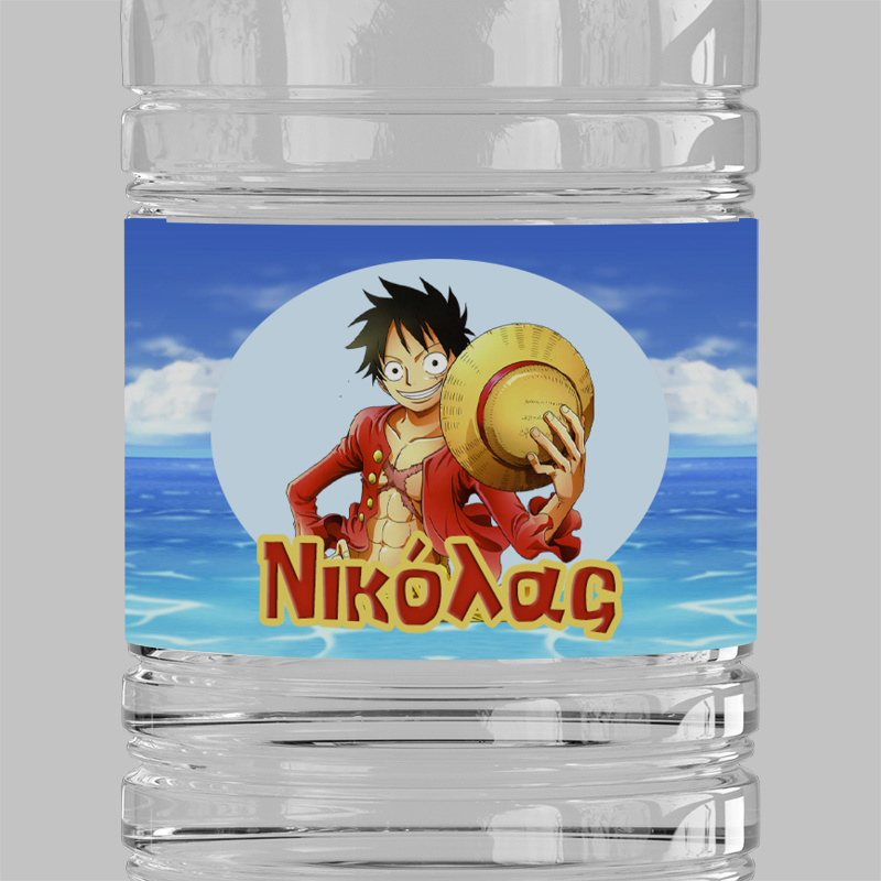 Προσωποποιημένες ετικέτες για μπουκαλάκια νερού με θέμα One Piece.