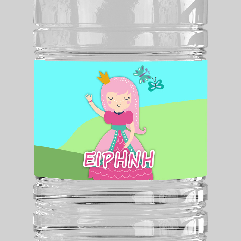 Προσωποποιημένες ετικέτες για μπουκαλάκια νερού με θέμα Πριγκίπισσα.