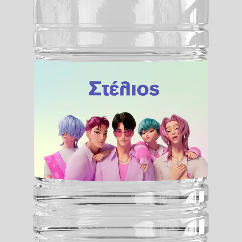 Προσωποποιημένες ετικέτες για μπουκαλάκια νερού με θέμα Saja Boys.