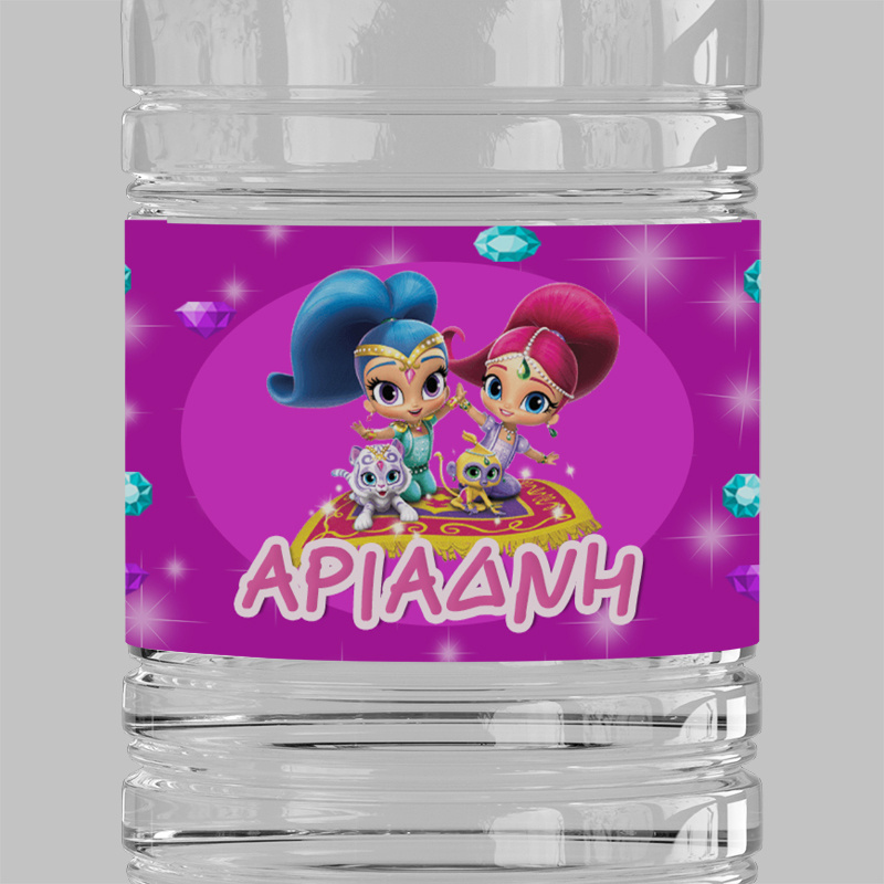 Προσωποποιημένες ετικέτες για μπουκαλάκια νερού με θέμα Shimmer & Shine.