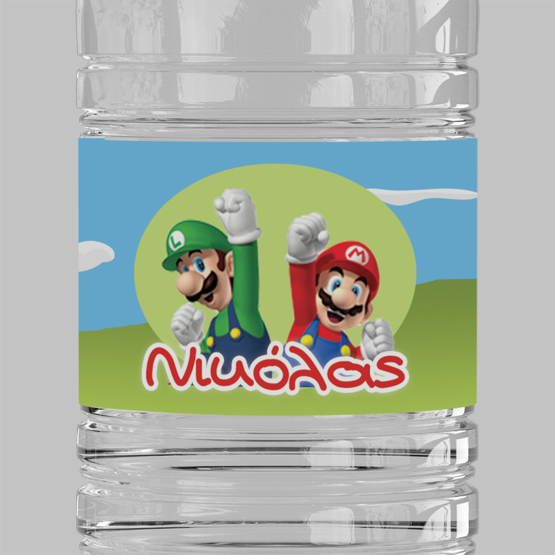 Προσωποποιημένες ετικέτες για μπουκαλάκια νερού με θέμα τον Super Mario.
