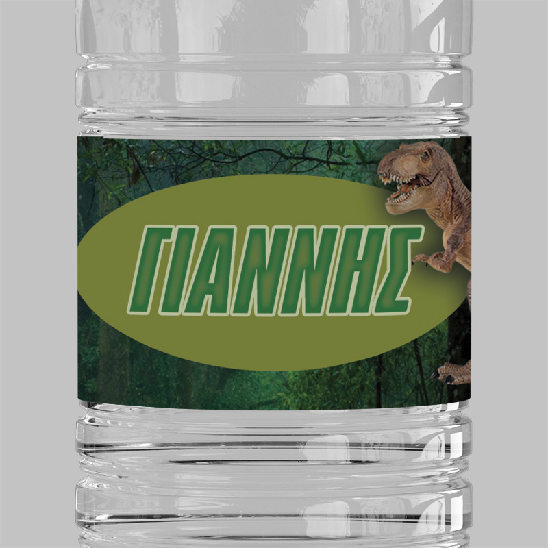 Προσωποποιημένες ετικέτες για μπουκαλάκια νερού με θέμα τον T-Rex.