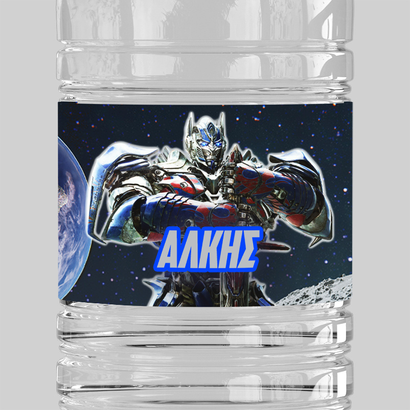 Προσωποποιημένες ετικέτες για μπουκαλάκια νερού με θέμα τα Transformers.