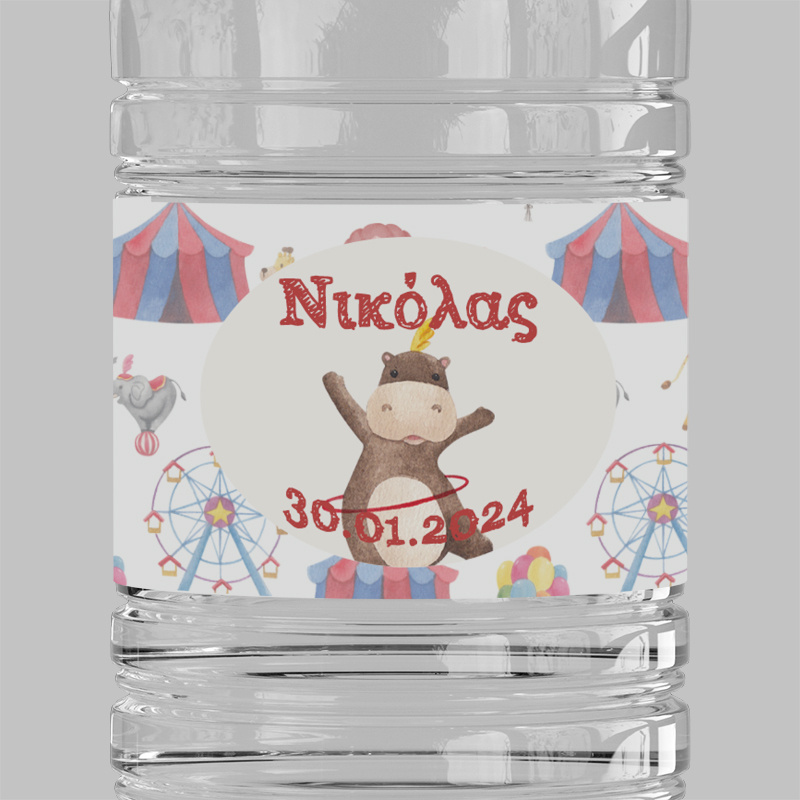 Προσωποποιημένες ετικέτες για μπουκαλάκια νερού με θέμα Τσίρκο.