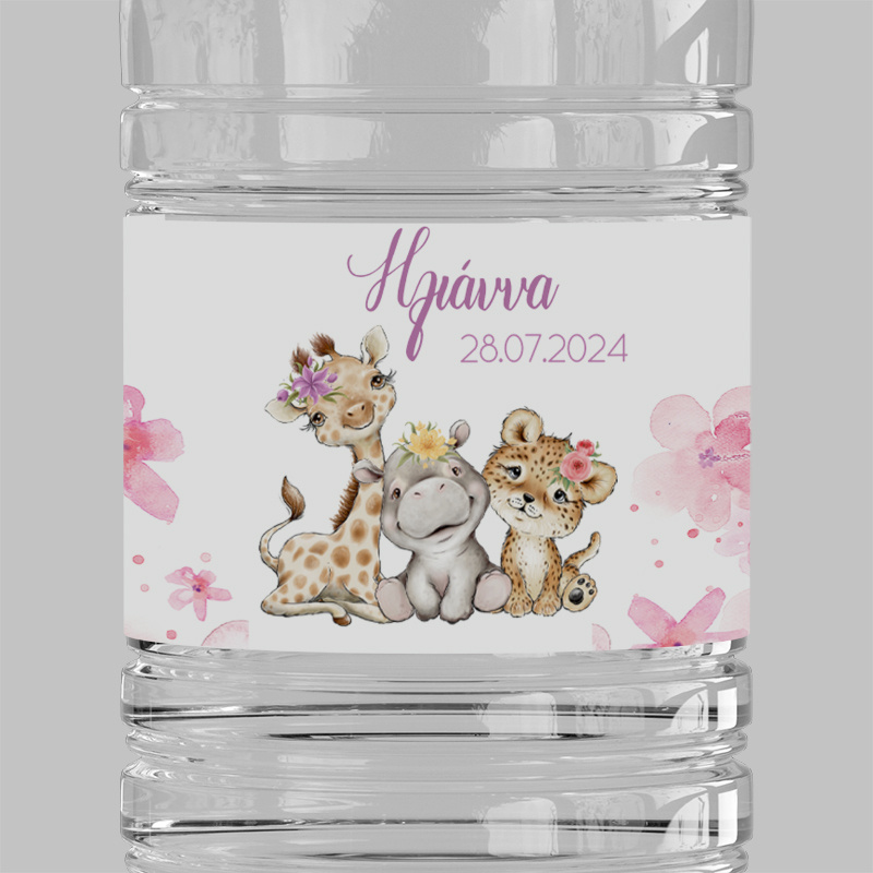 Προσωποποιημένες ετικέτες για μπουκαλάκια νερού με θέμα Ζωάκια ζούγκλας Κορίτσι.