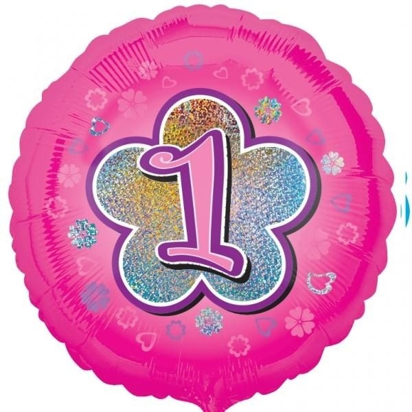 Foil 18″ Στρογγυλό Νο 1 Holographic Pink Flowers
