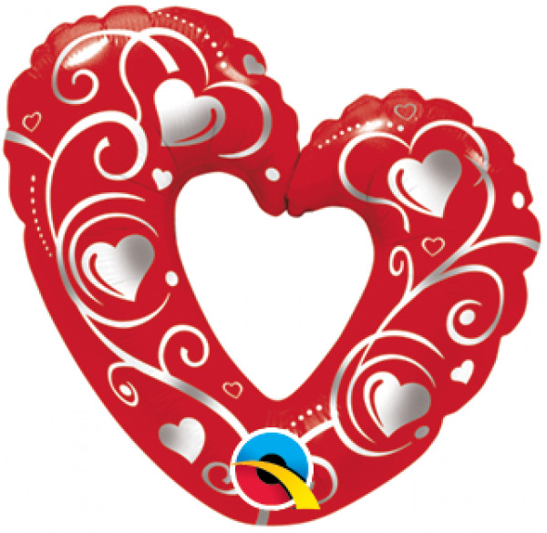 Μπαλόνι Foil Minishape 14″ Hearts & Filigree RedΦουσκωμένα μόνο παραλαβή από την έδρα μας