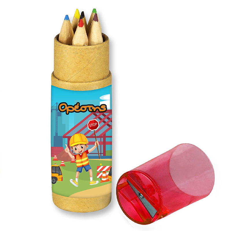 Σετ Ξυλομπογιές 6τμχ με ξύστρα Φορτηγά με όνομα ένα υπέροχο δωράκι για τους μικρούς μας φίλους. Για την Βάπτιση και το Πάρτι σας.