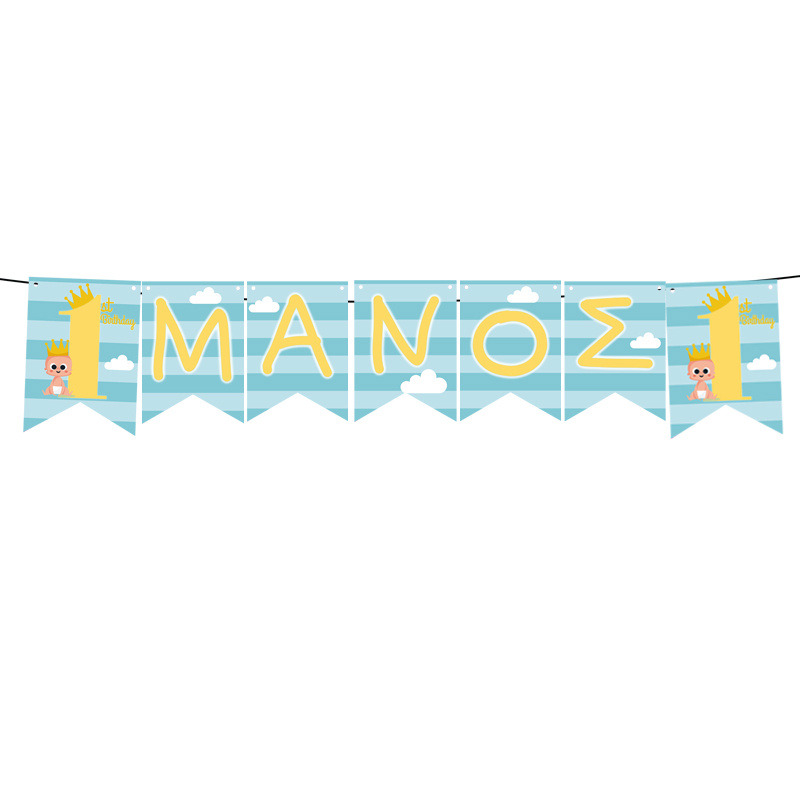 Γιρλάντα γράμματα 1st Birthday Boy All Aboard 3.2μ X 25εκ, 1,83μ Χ 10εκ