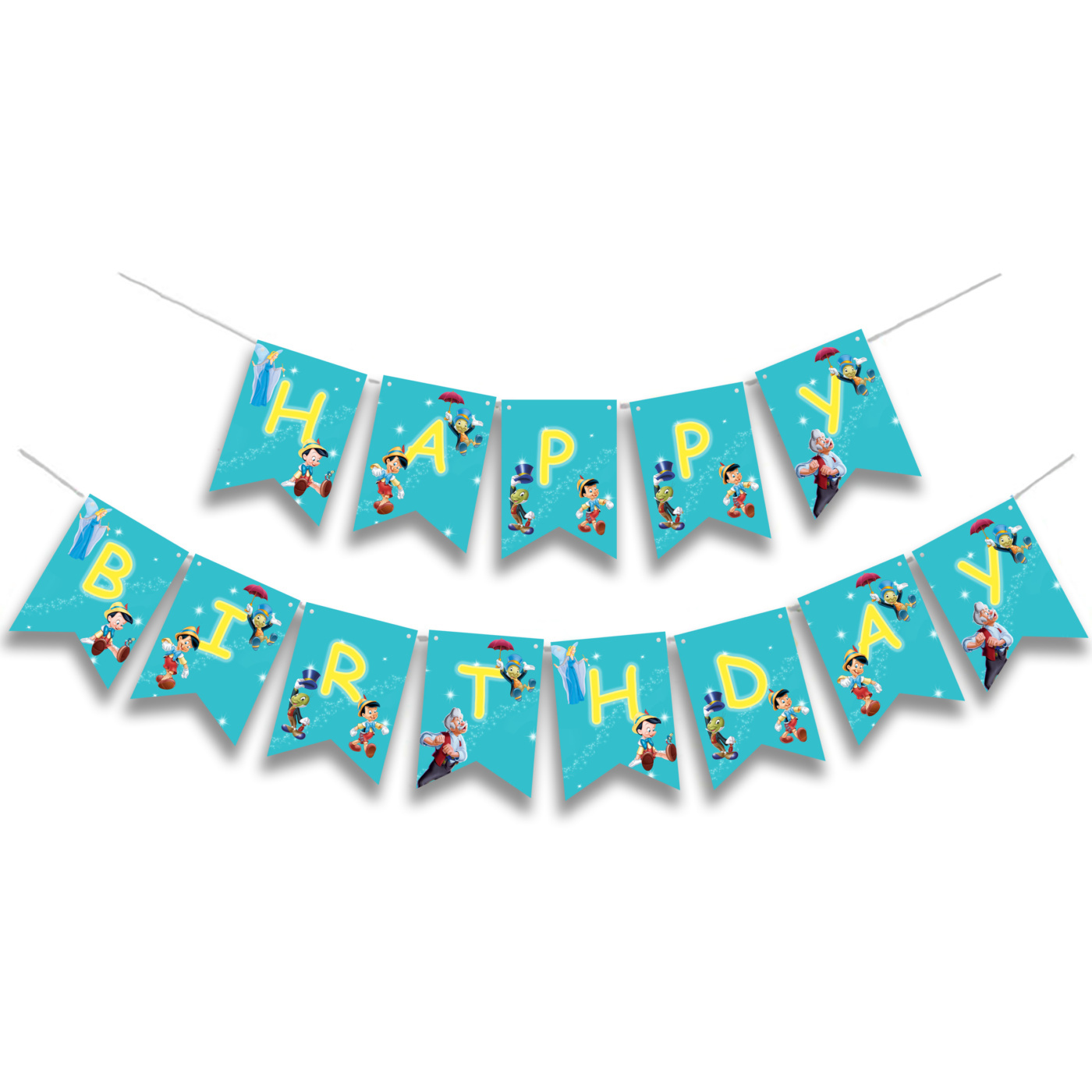 Γιρλάντα Γράμματα Πινόκιο Happy Birthday για μια όμορφη διακόσμηση.