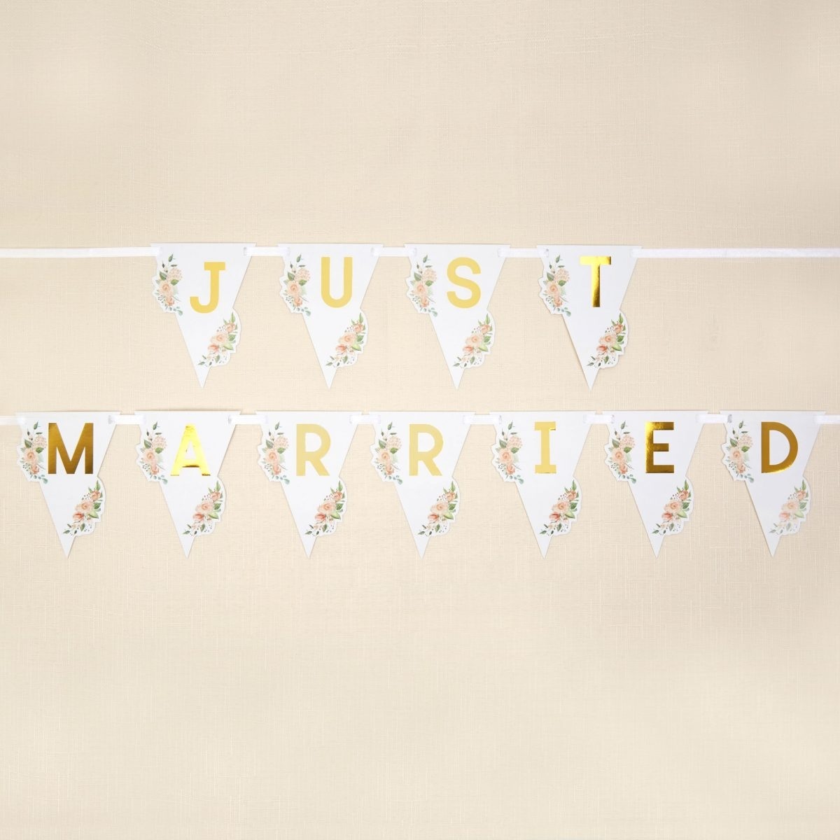 Γιρλάντα σημαιάκια χάρτινη Just Married για αυτοκίνητο Geo Floral 1μ Wedding-Γάμος-Anniversary- Επέτειος