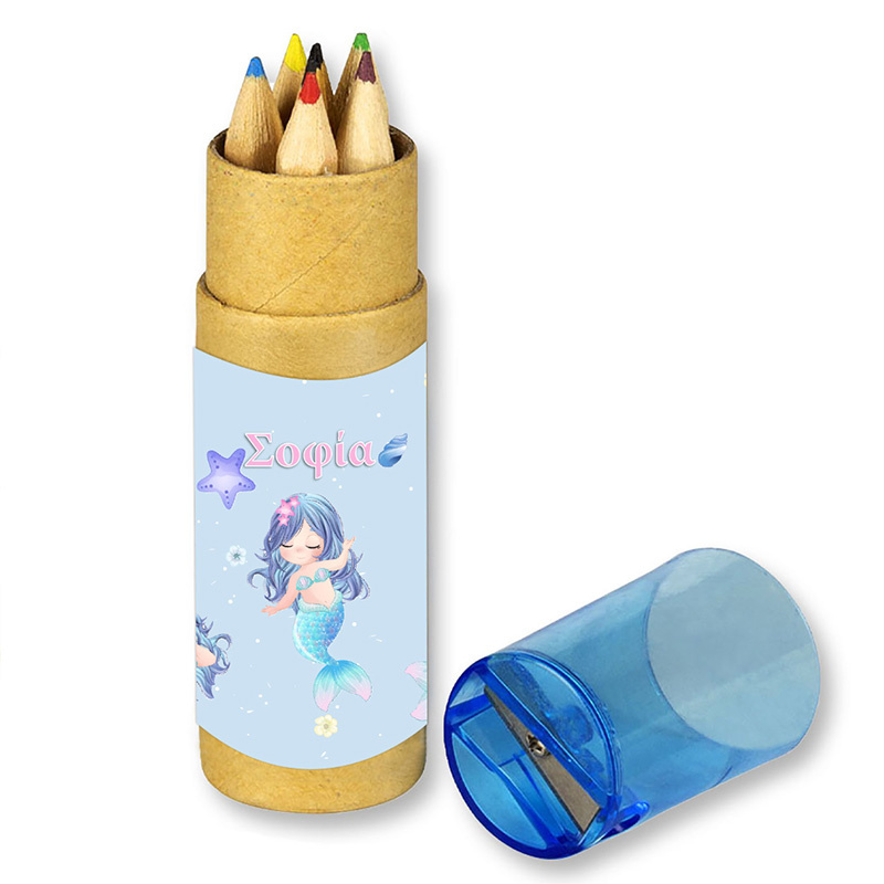 Σετ Ξυλομπογιές 6τμχ με ξύστρα Γοργόνα με όνομα ένα υπέροχο δωράκι για τους μικρούς μας φίλους. Για την Βάπτιση και το Πάρτι σας.