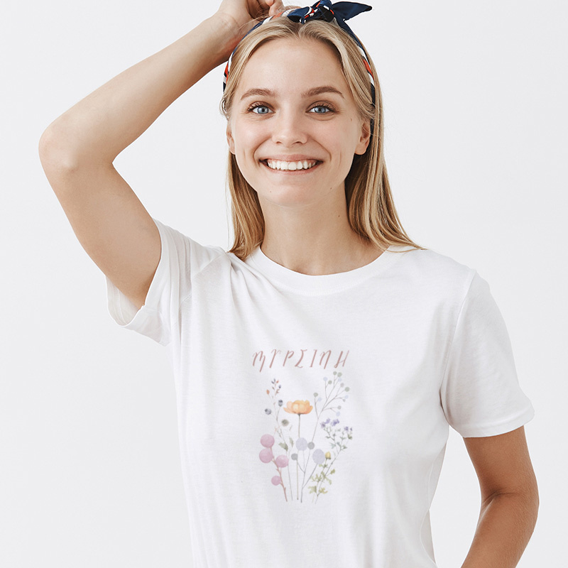 Μοναδικό μπλουζάκι Floral Pastel με όνομά τυπωμένο
