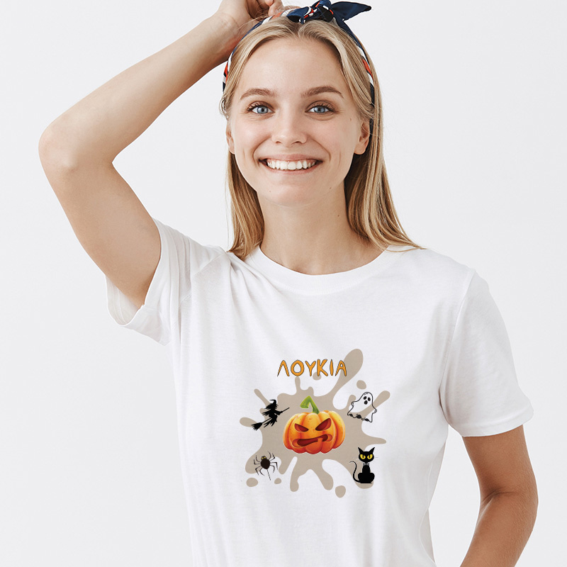 Μοναδικό μπλουζάκι Halloween Κολοκύθα με όνομά τυπωμένο