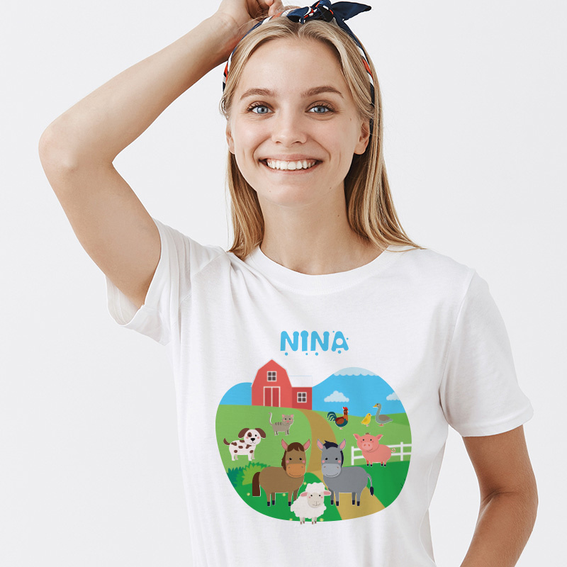 Μοναδικό μπλουζάκι Ζωάκια Φάρμας με όνομά τυπωμένο